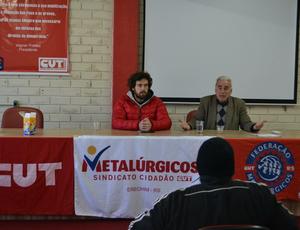 Durante a palestra de abertura, o Presidente da Federação dos Trabalhadores Metalúrgicos do RS falou sobre saúde do trabalhador, Reforma Previdenciária e PL 4330 em Erechim