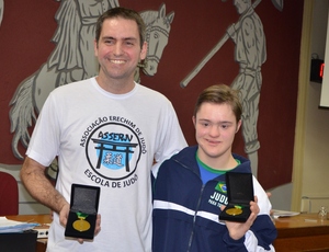 Na noite desta segunda-feira (11) o judoca Pedro Baidek e seu treinador Giuliano Liotto foram homenageados e receberam a medalha