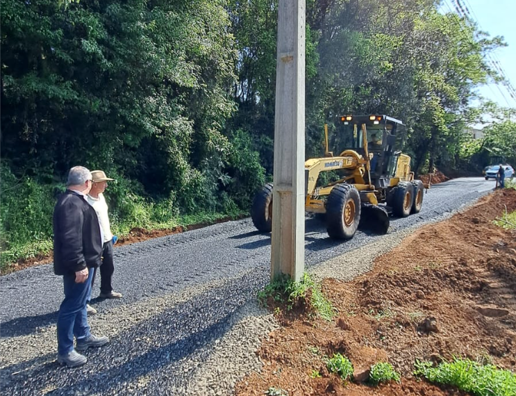 Secretário de Obras Públicas, Habitação, Segurança e Proteção Social, Mario Rossi, visitou as obras de asfaltamento da rua José Cantele, no bairro Paiol Grande