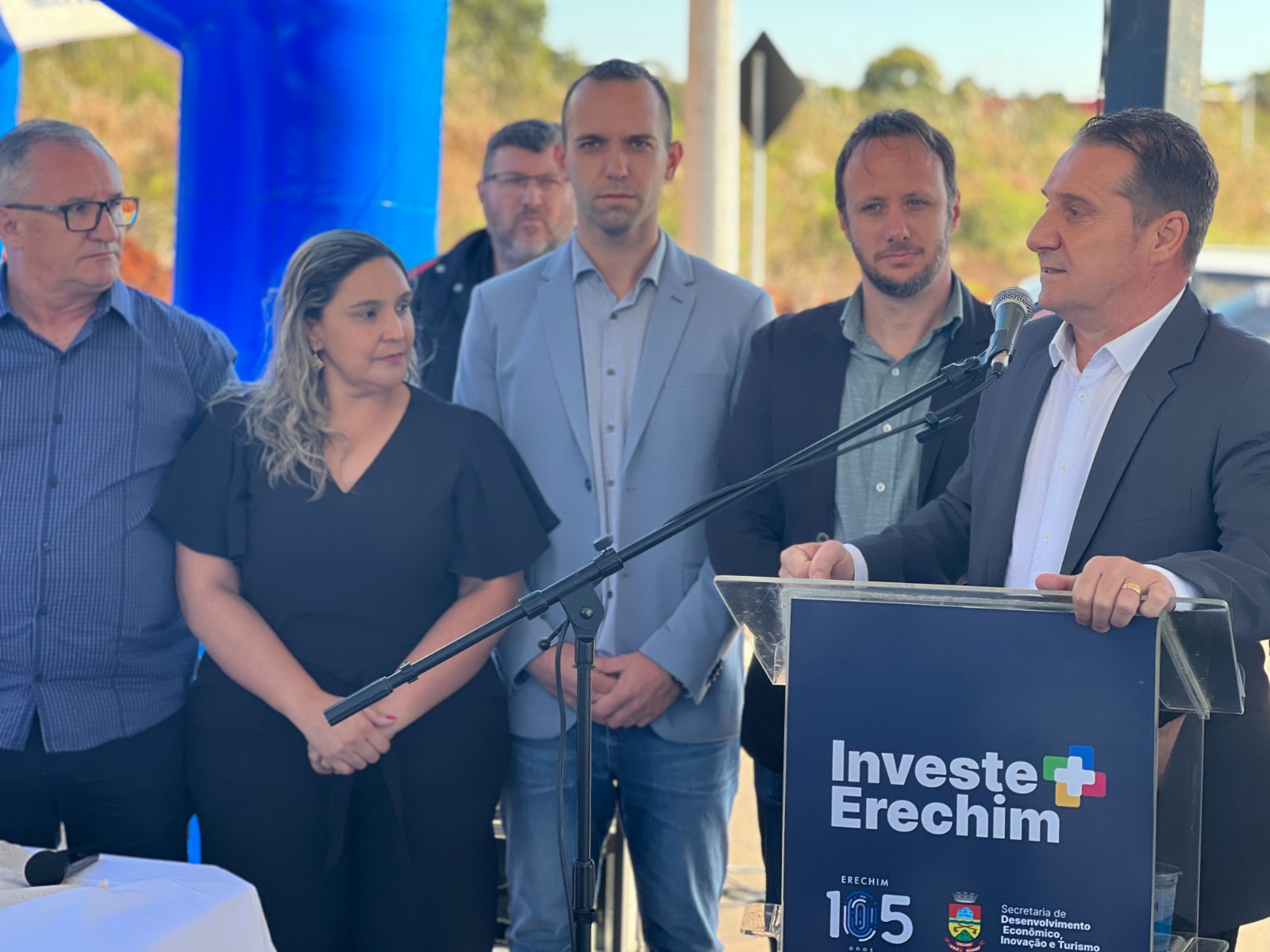 Com estas palavras, o prefeito de Erechim, Paulo Polis, encerrou o discurso de inauguração do novo Distrito Industrial Giácomo Madalozzo, no Bairro Industrial Davide Zorzi, que entregou 29 lotes às empresas nos 105 anos do município