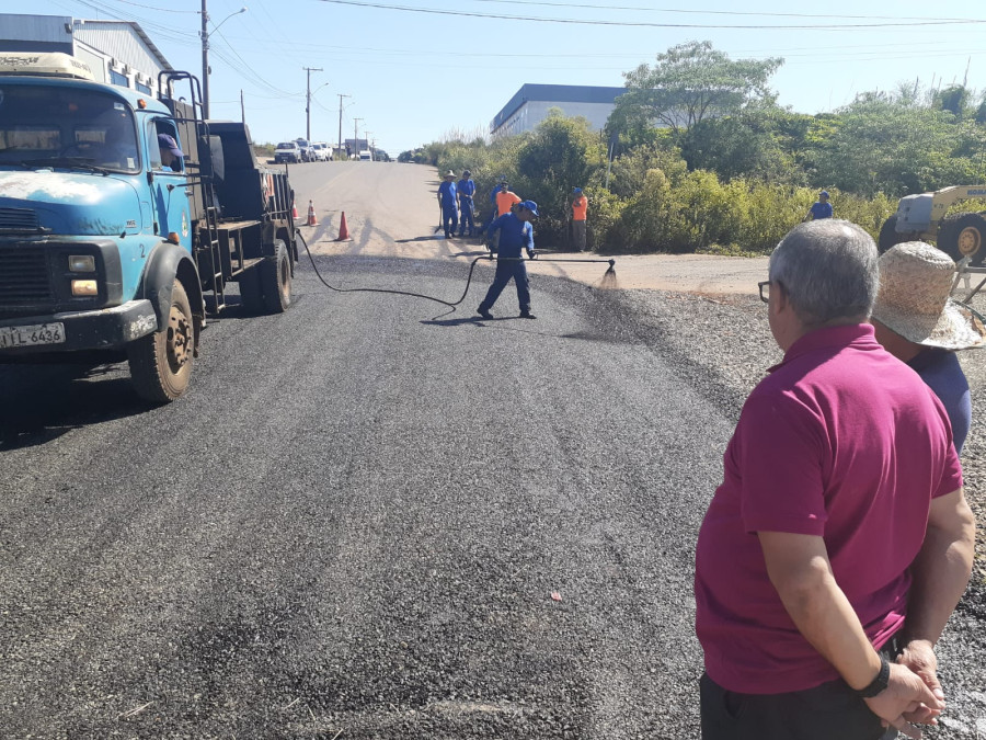 Pavimentação da via integra projeto das 17 ruas que serão feitas pela Prefeitura de Erechim. Secretário Mario Rossi acompanhou, na manhã de segunda-feira (20), o trabalho no local, principal acesso aos bairros Liberdade e Poltronieri